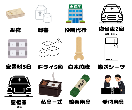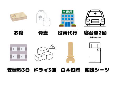 ※自宅安置不可・深夜料金別途などの各種条件がありますので詳しくはお問い合わせください